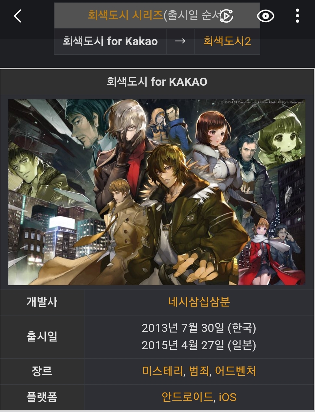 현재 하는 버전은 회색도시1인듯? 카카오게임즈에서 퍼블리싱 중이다.